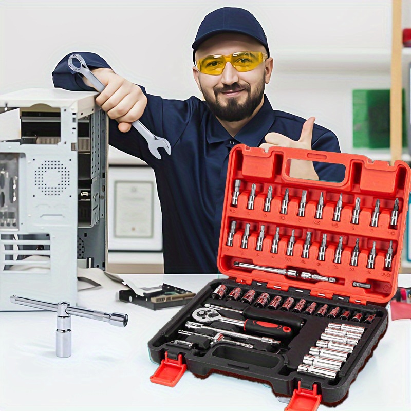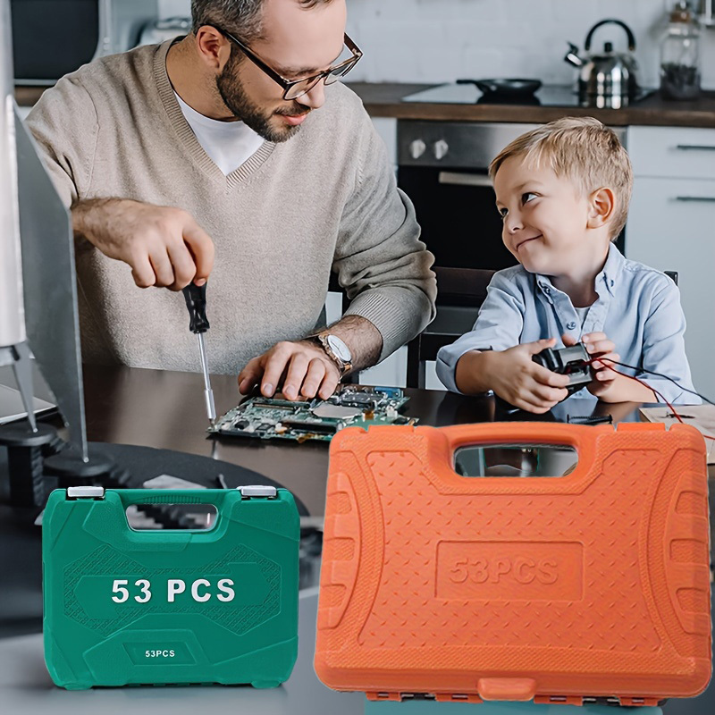53pcs Multifunctional Auto Repair Tool Set - Professional Motorcycle Repair Tool Set, Durable Metal Hand Tools, With Storage Box, Including Ratchet Wrench, Screwdriver, Socket, Ideal Christmas Gift For Dad And Children