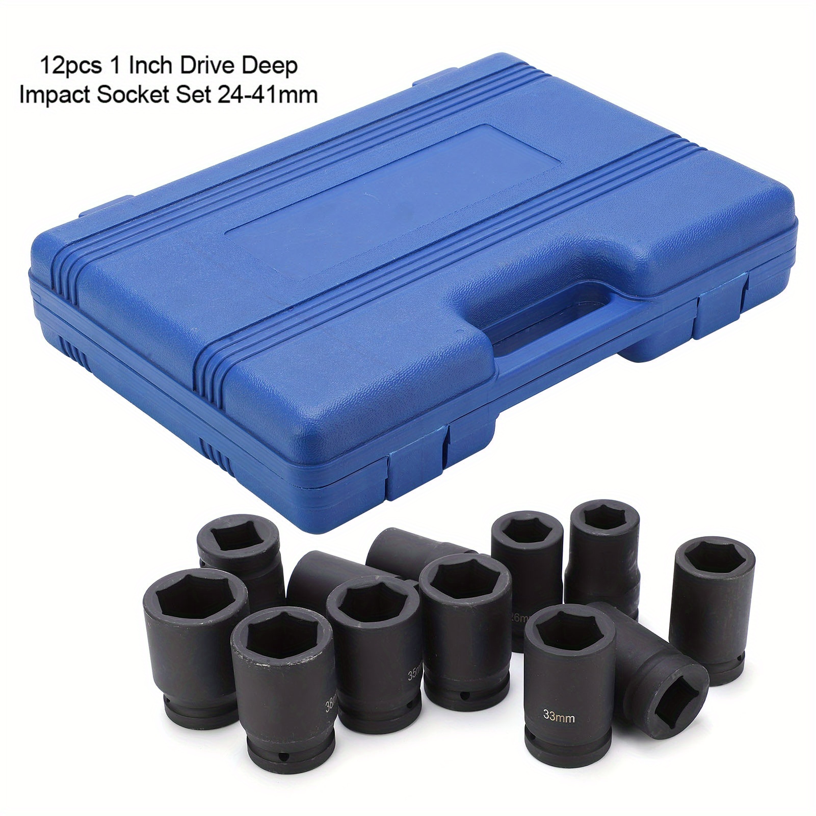 12pcs 1 Inch Drive Deep Impact Socket Set, 24-41mm, Durable Other Metal Construction, Professional Quality Hand Tools for Automotive and Home Maintenance
