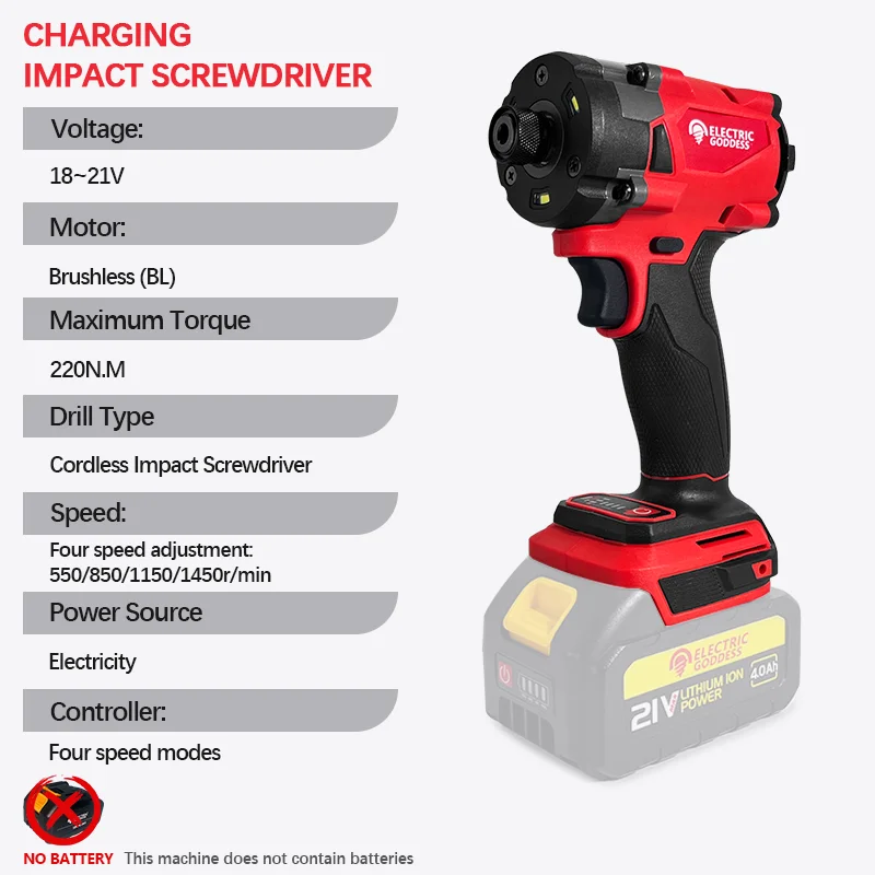Electric Goddess 220N. M Impact Driver Electric Driver Brushless battery screwdrivers High Torque For Makita 18V Battery Pin